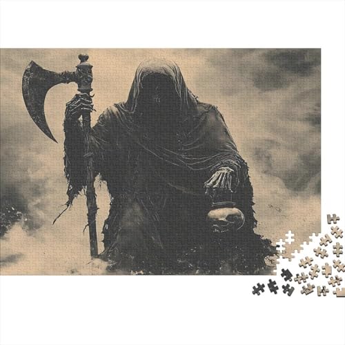 Grim Reaper—dark Fantasy Illustration 1000piece Jigsaw Puzzle Premium Paper Family Activity Adults & Kids Grim Reaper with Scythe in Smoky Background Creative Development Solo & Group Play Sustainable