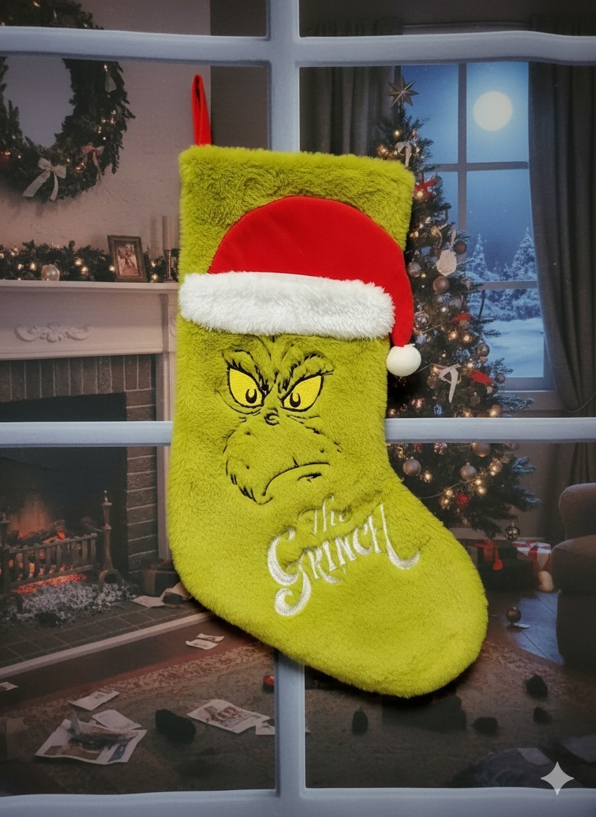Luxury Green Plush Grinch Stocking 19x43cm Soft Furry Xmas Decoration Divas