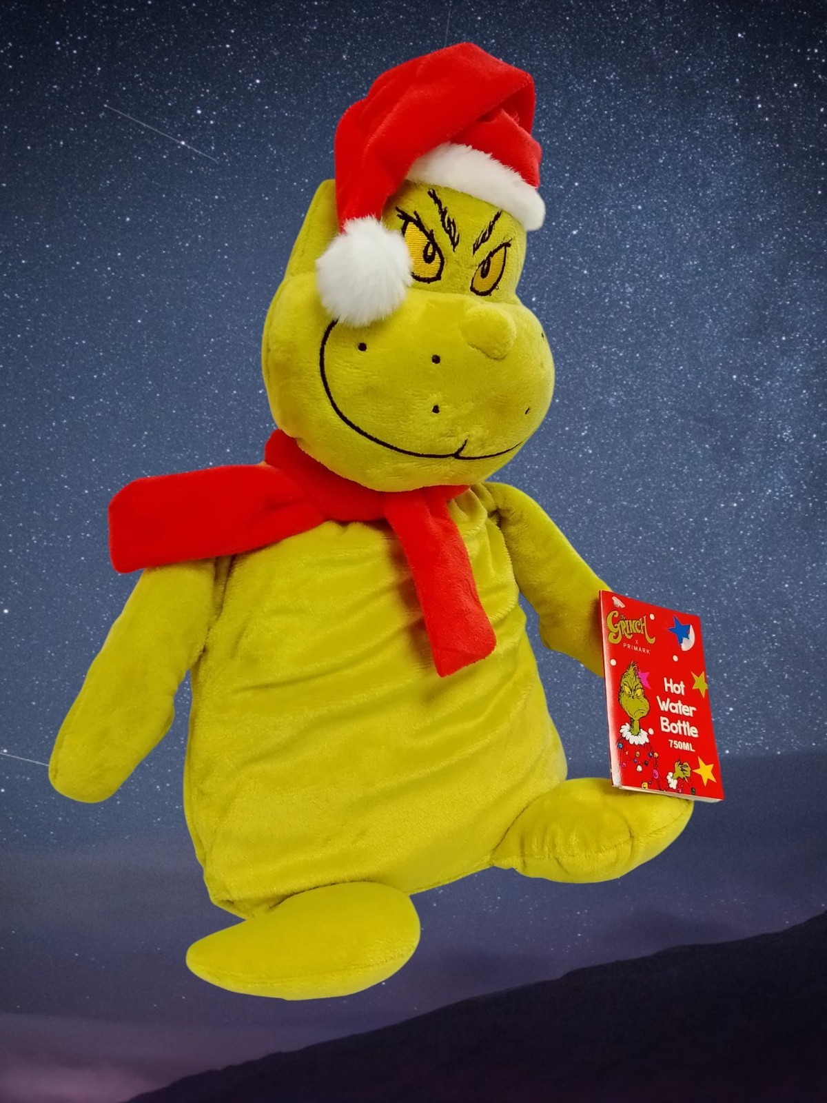 Festive Grinch Plush Hot Water Bottle 750 ml Soft Cover Warm Winter Comfort