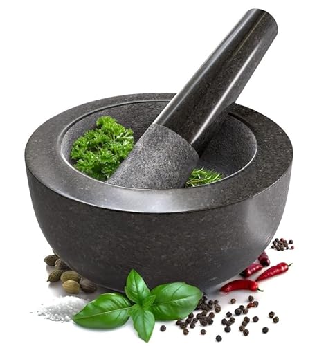 Large Granite Pestle and Mortar - Classic Grinder And Mixer - Ideal For Your Herbs - Spices - Cooking - Essential Kitchen Accessories And kitchen gadgets - Premium Set