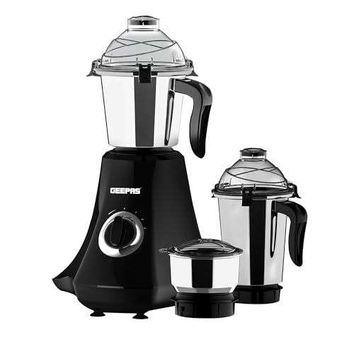 GEEPAS 750W 3-in-1 Mixer Grinder | Stainless Steel Jars & Blades | 3 Speed Control, Perfect for Chutney, Dry & Wet Fine Grinding Mixing | Overload Protection | Powerful Motor | 2 Year Warranty, Black