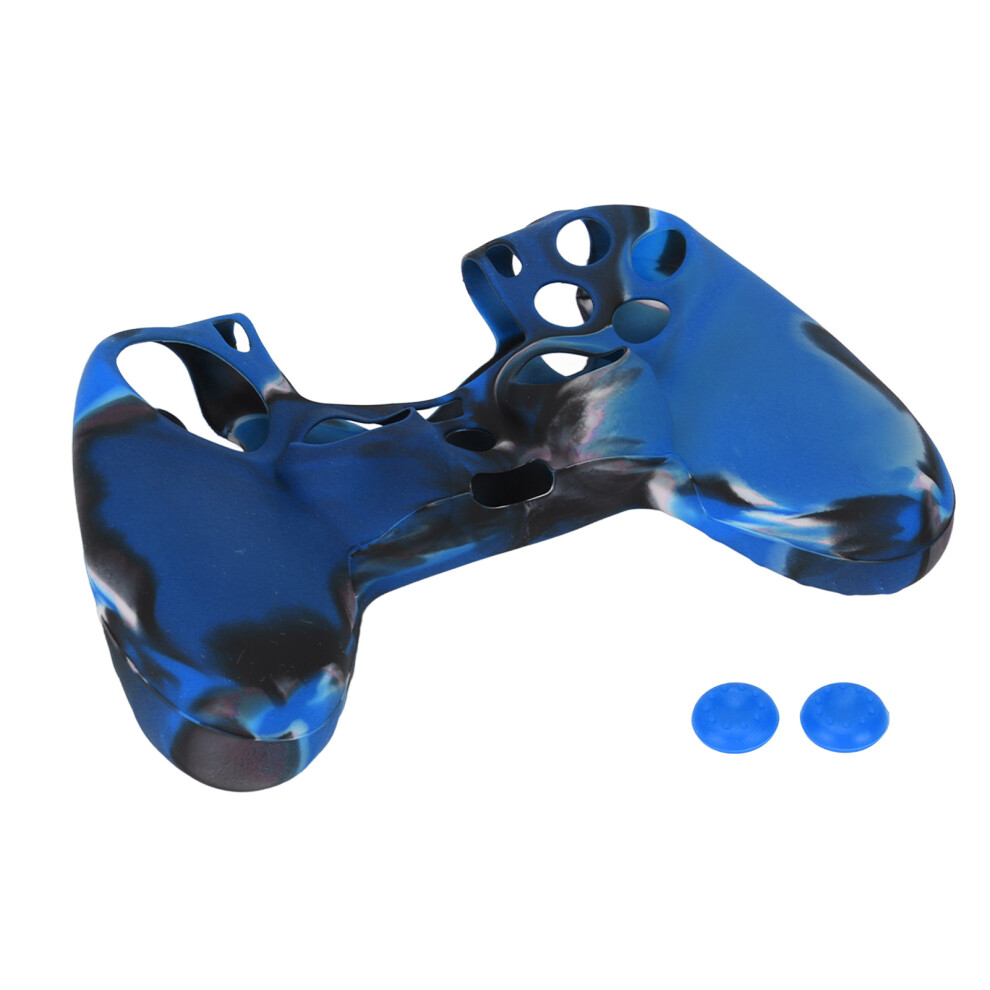 SKINOWN PS4 Controller Skin Grip Silicone Case Anti-Slip Protective Grip Cover for PS4 Controller with 4 Thumb Grips(Blue Camo)