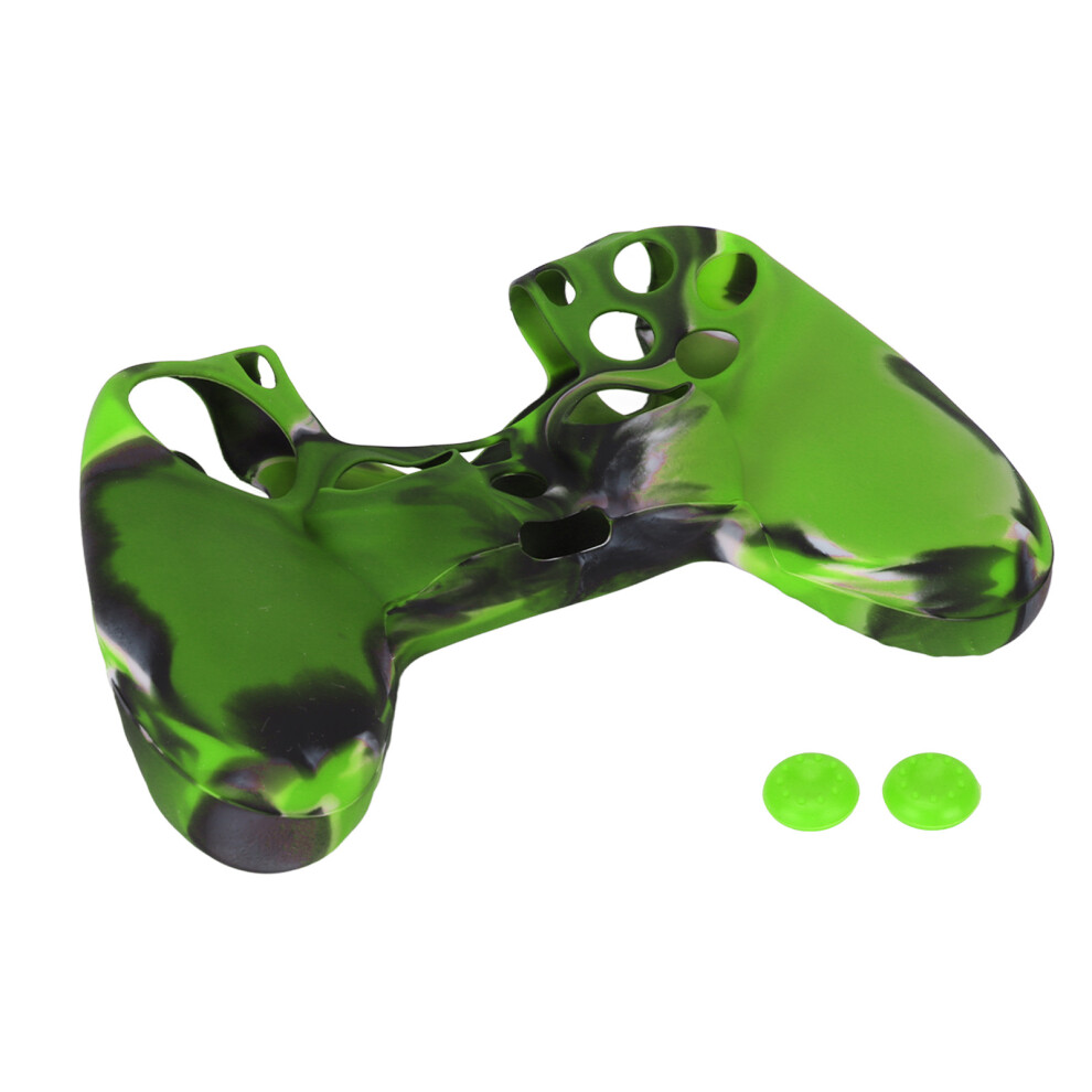 Assecure pro soft silicone skin grip protective cover for Sony PS4 controller rubber bumper case with ribbed handle grip [Playstation 4] (Green Camouflage)