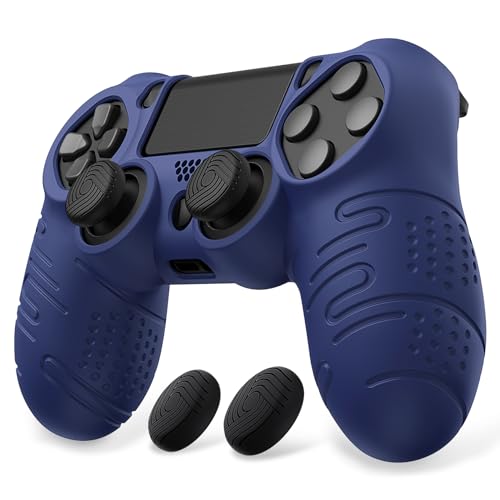 PlayVital Silicone Cover Skin for ps4 Controller, Anti-Slip Soft Protector Case Cover with Thumb Grip Caps for ps4 & Slim & Pro Controller - Line & Dot Navy Blue