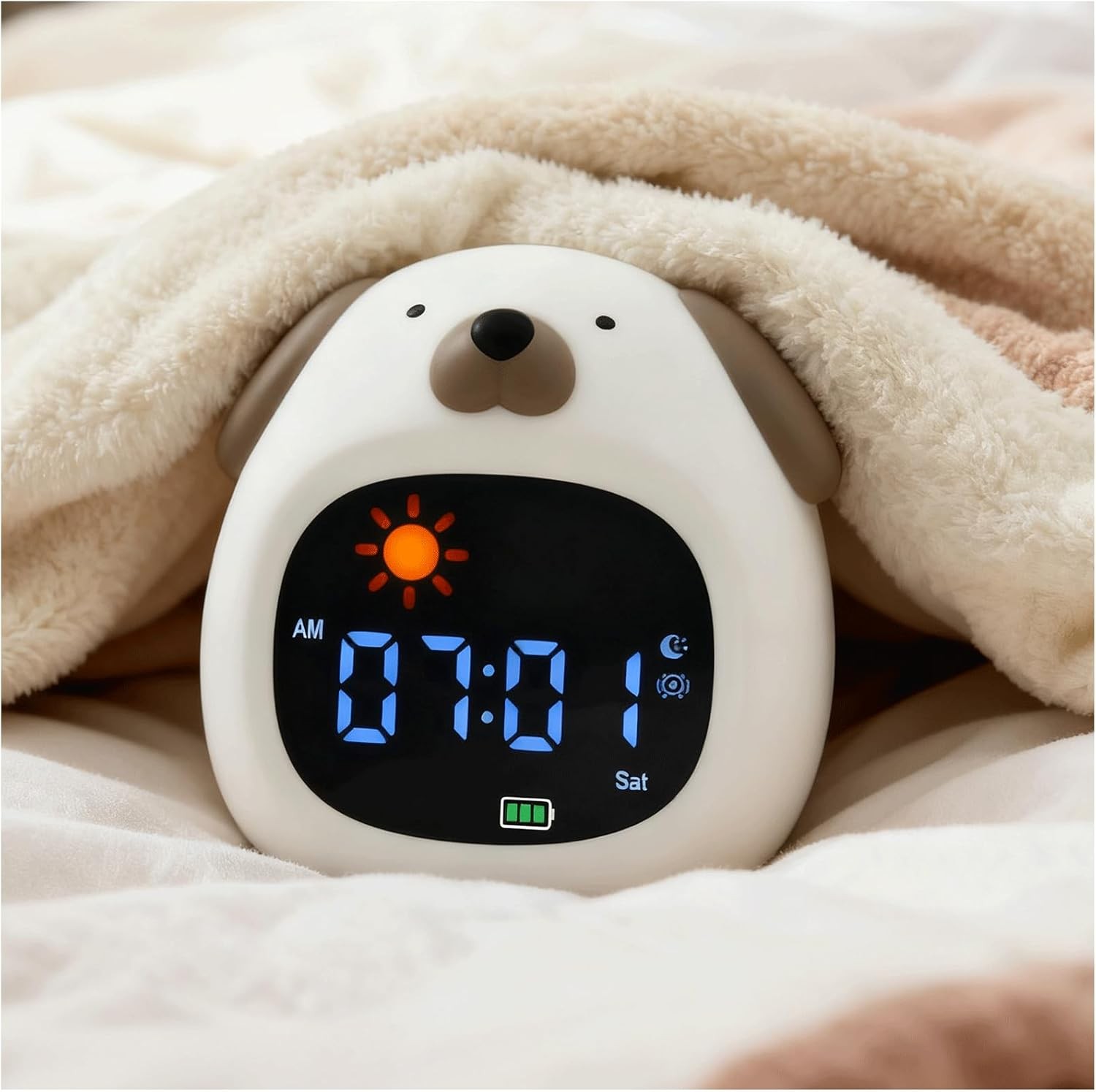 Dog - Shaped Toddler Sleep Trainer Clock with Night Light & White Noise, Rechargeable Digital Alarm Clock for Children, Kids Sleep Training Clock with 9 - Colour Light & Soothing Sounds