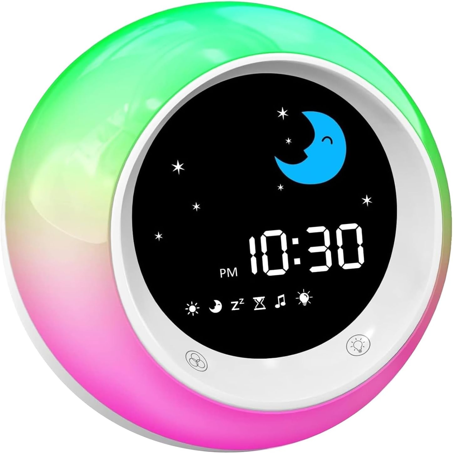 Kids Alarm Clock with Night Light, Toddler Sleep Trainer Clock with White Noise