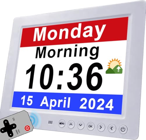 Véfaîî Newest, Dementia Clock with British DST Adjustment, 30 Alarms & Custom Reminders, Sleep Trainer, Calendar Day Clock with Large Display for Memory Loss, Alzheimer's, with Remote Control