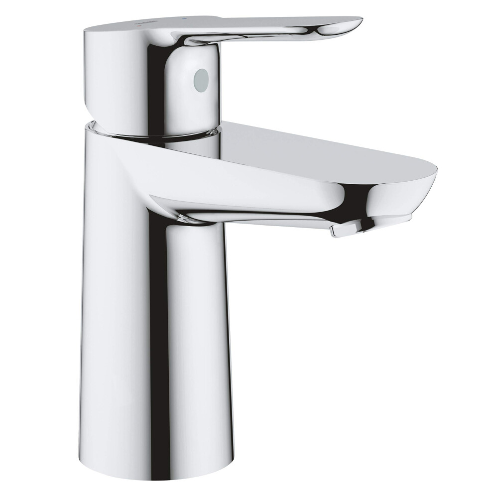 GROHE BauEdge - Smooth Body Single-Lever Basin Mixer Tap (1-Hole Installation, Metal Lever, 28mm Ceramic Cartridge, Water Saving Technology, No Waste