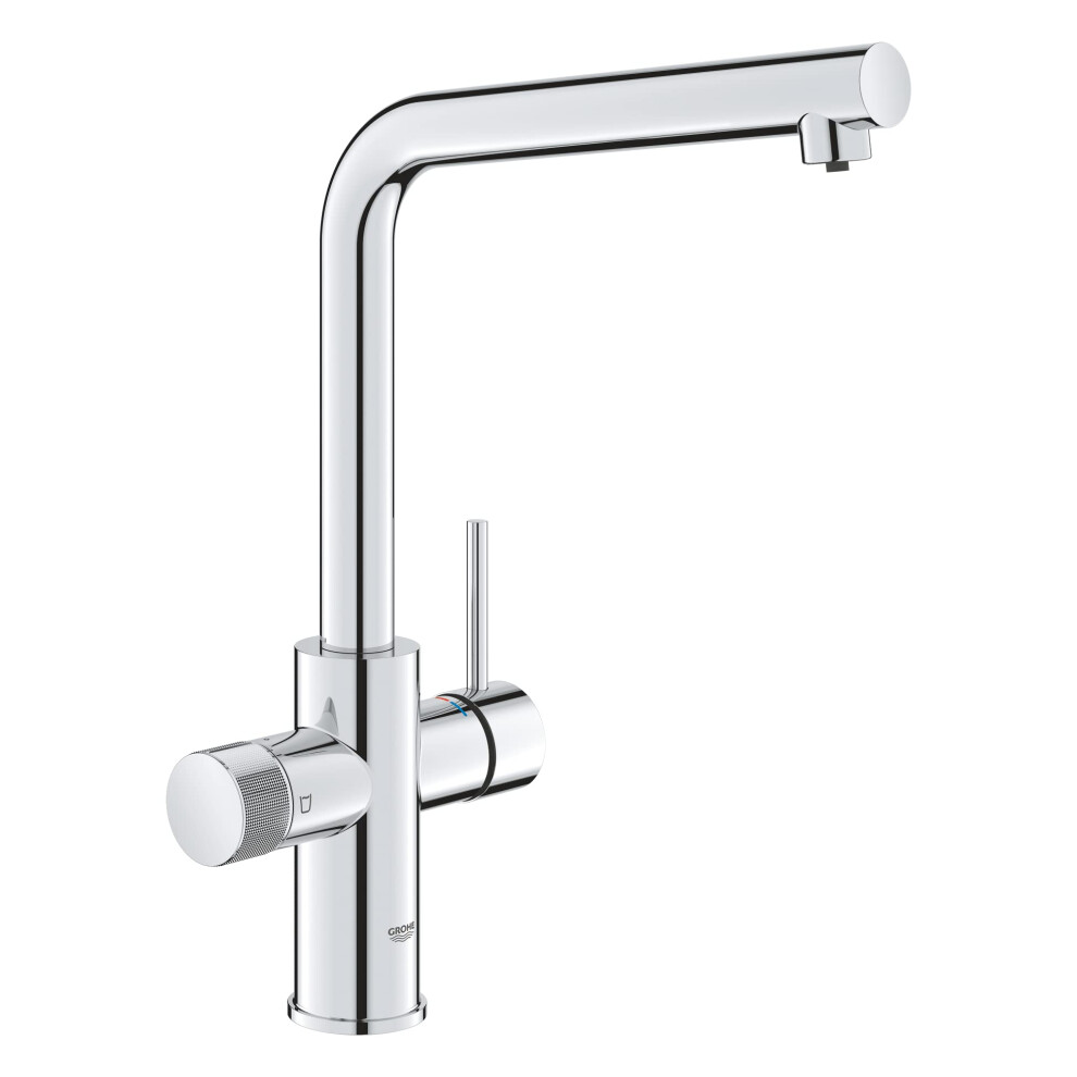 GROHE Blue Home 31927001 Kitchen Sink Faucet, Filtration, Gasification and Cooling System, Extendible Aerator, L-Shaped Spout, Chrome, 31927001