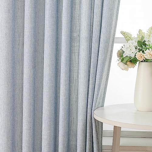 Vision Home Pinch Pleated Full Blackout Curtains Linen Blended Room Darkening Window Curtains 84 inch for Living Room Bedroom Thermal Insulated Pinch Pleat Drapes with Hooks 2 Panel 40"Wx84"L,Blue Fog