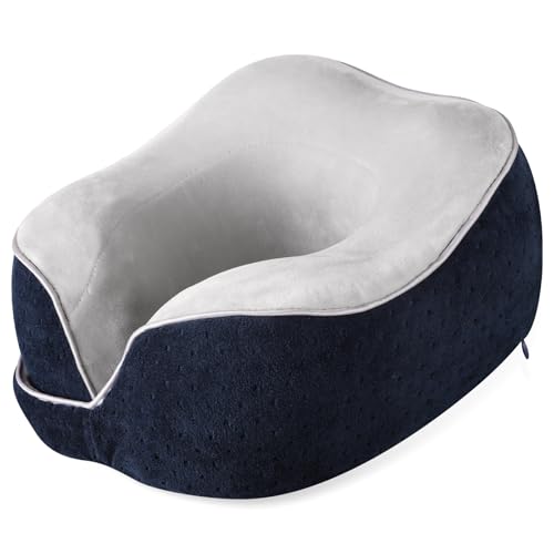 Gosider Neck Pillow for Traveling Airplane Breathable Travel Neck Pillow for Airplane 100% U Shape Memory Foam Portable Travel Pillow for Car Home Office Traveling Flight Headrest Sleep Navy Blue