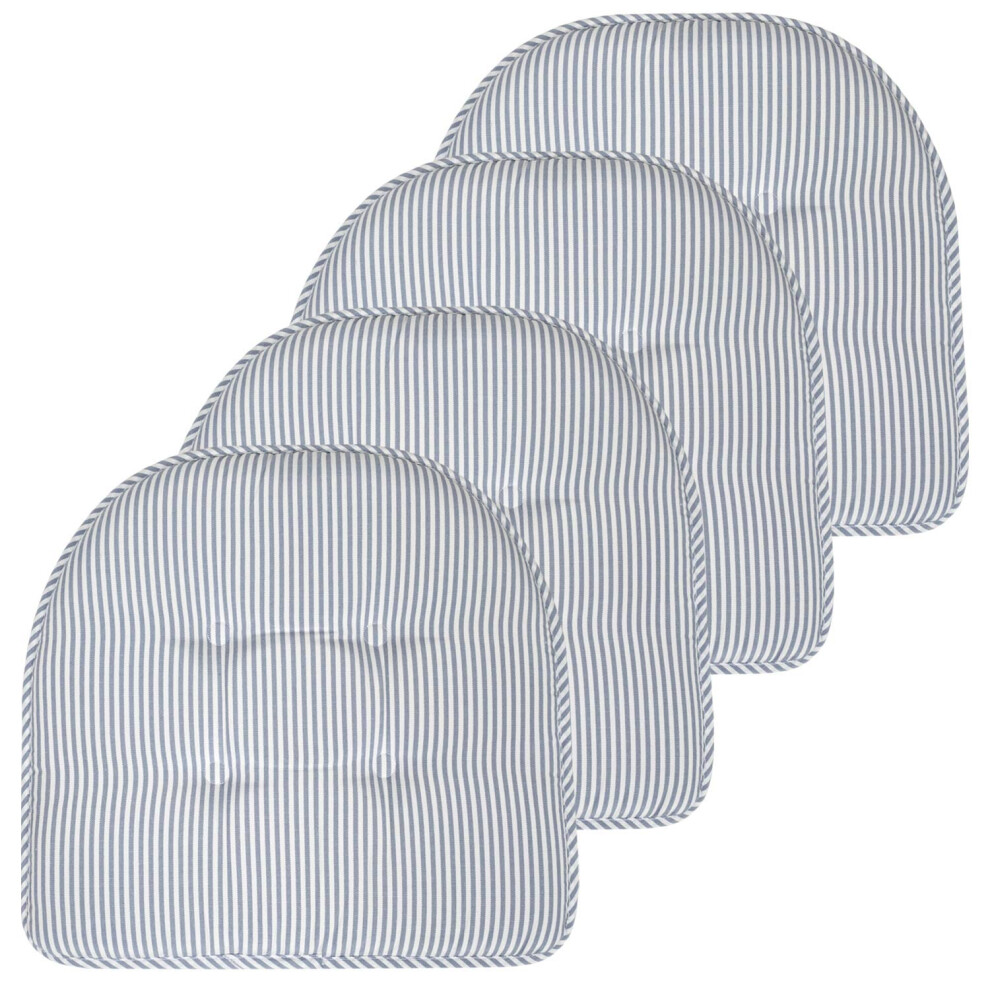 Sweet Home Collection Chair Cushion Memory Foam Pads Tufted Slip Non Skid Rubber Back U-Shaped 17 x 16 Seat Cover Pinstripe Blue 4 Count
