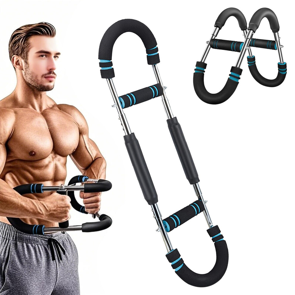 Twister Arm Trainer, Adjustable Chest Expander, Chest Exerciser for Men with U-shaped Double Steel Spring, Portable Power Twister Bar with Non-slip Foam Handle, Home Exercise (Blue Black, 44-88 lb)