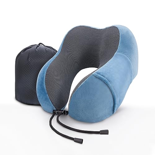 WENGX Travel Pillow Neck Pillow Memory Foam Soft Comfort and Support Travel Flight Neck Pillows,U-shaped Pillow for Sleeping with Storage Bag for Airplane Car Office Home,etc (Blue)