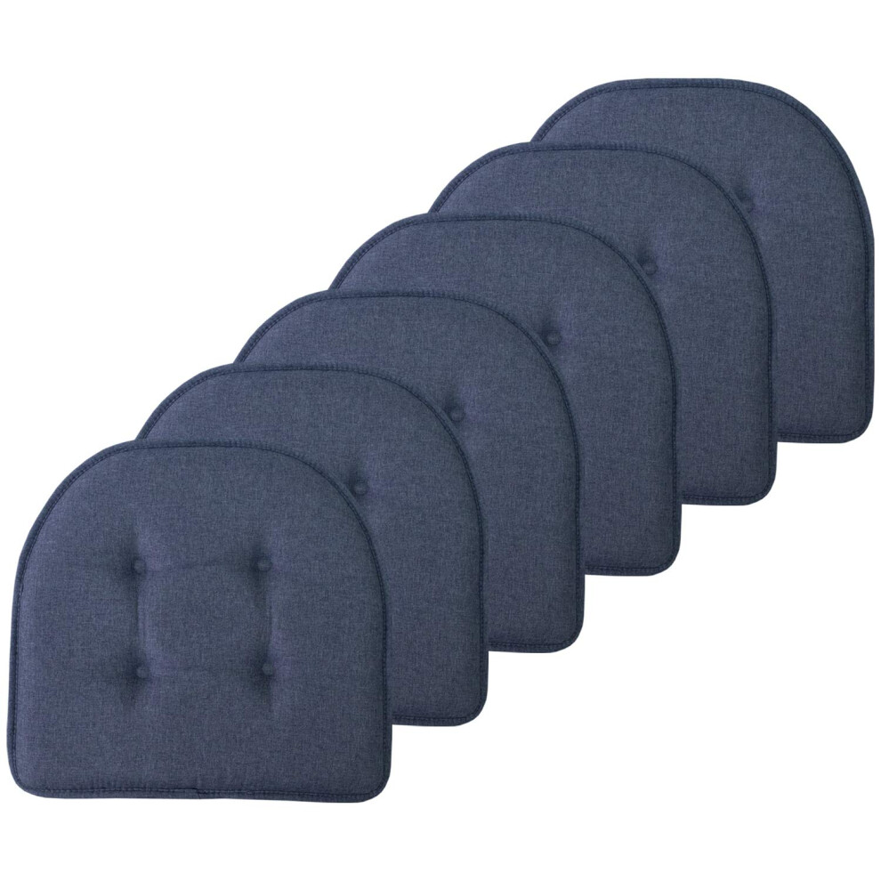 Sweet Home Collection Chair Cushion Memory Foam Pads Tufted Slip Non Skid Rubber Back U-Shaped 17 x 16 Seat Cover 6 Pack Denim Blue