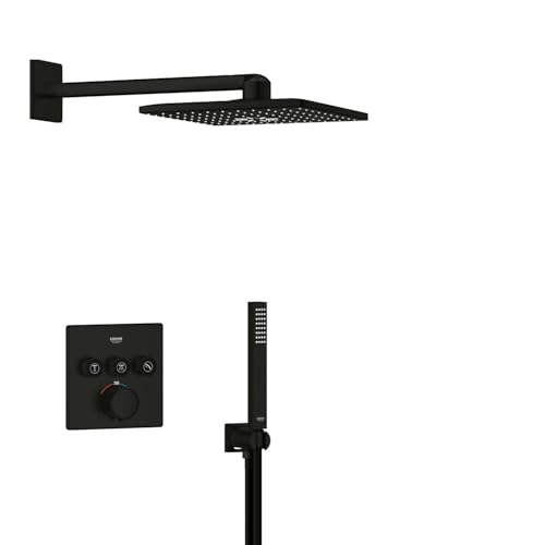 GROHE Precision SmartControl - Concealed Shower System with 3 Valves Thermostat (SmartActive 31cm Head Shower 2 Sprays, Cube Stick Hand Shower 1 Spray, Hose 1.5m, Square Trim), Matt Black, 348752430