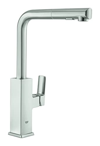 GROHE Tallinn | Kitchen tap Single-Lever Sink Mixer 3/8" | high L-spout with Pull-Out Comfort Shower Head and 2 Spray Options | 360° Swivel Range | Stainless Steel | 30420DC0