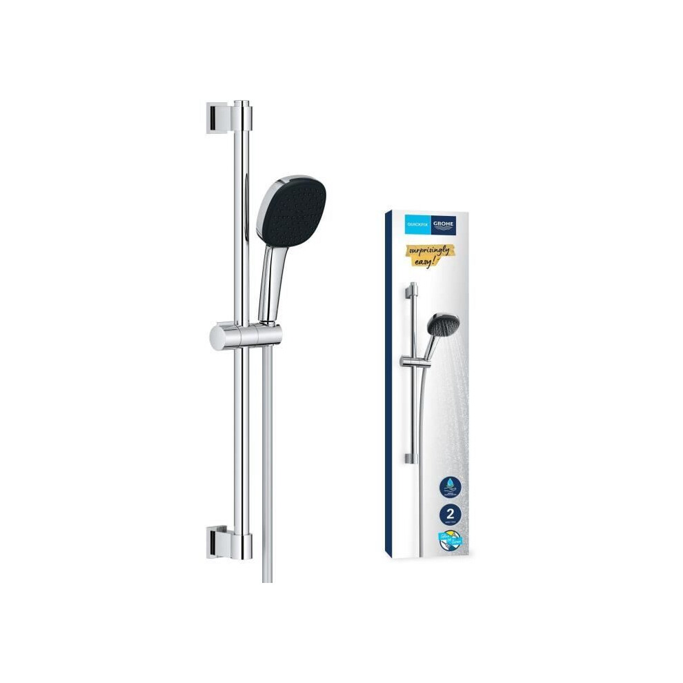GROHE Vitalio Start 110 QuickFix - Shower Set (Round 11 mm Hand Shower 2 Sprays: Rain and Jet, Hose 1.75m, Rail 60 cm, Extra Water Saving), Easy to Fit with GROHE QuickGlue, Chrome, 2794810E