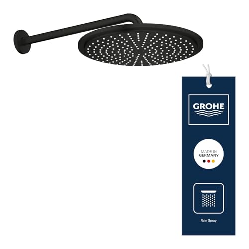 GROHE Rainshower Cosmopolitan 310 Head Shower Set with Rain Spray and DripStop (Water Saving, Wall Mounted Shower Head 310mm with Arm 380mm, Rain Spray Pattern), Round Shape, Matt Black, 260662430
