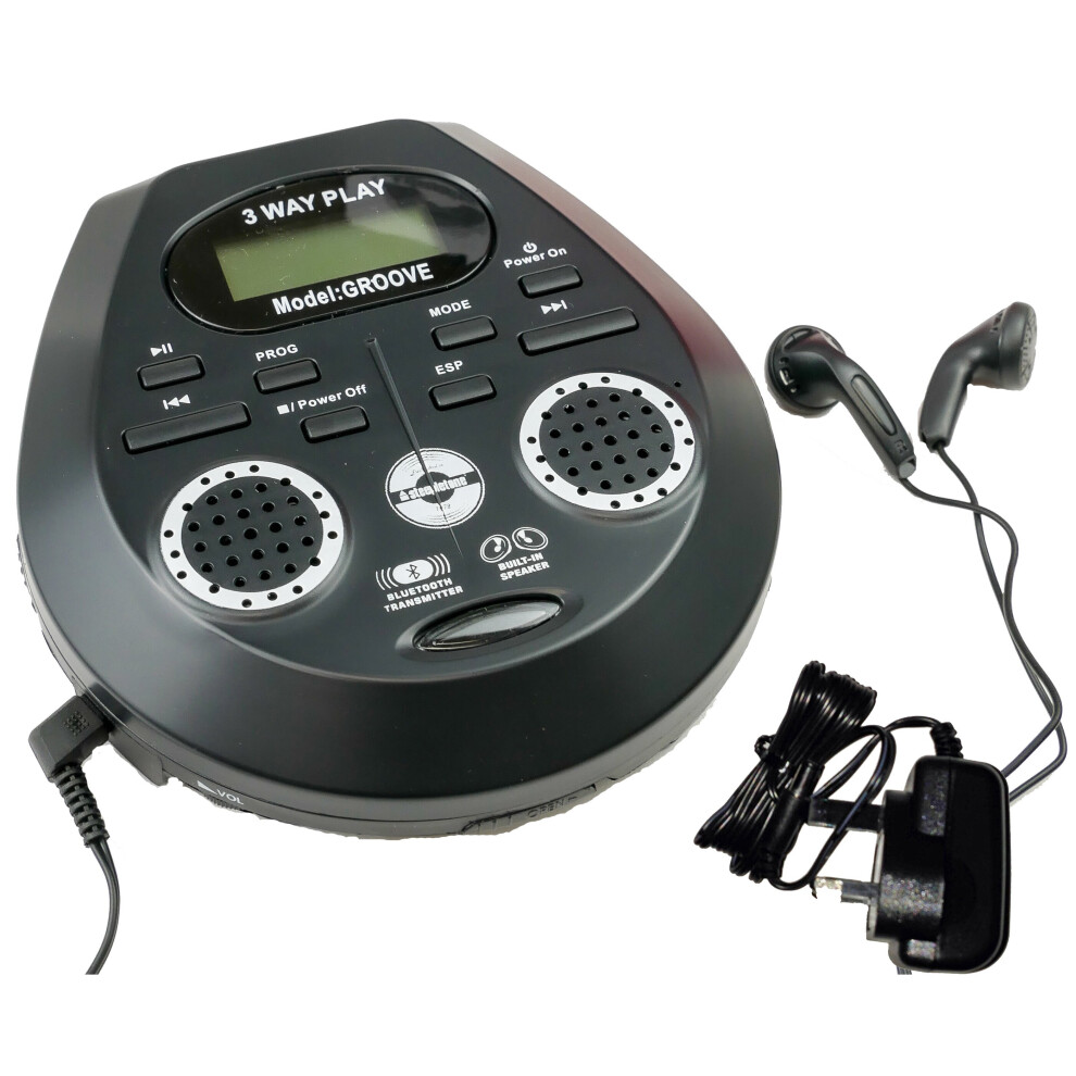 Steepletone Groove CD Discman, Built-In SPEAKERS, Ultra Compact Personal CD Player, Bluetooth Transmitter (to Speaker/Headphones). Inc Power Adapter.