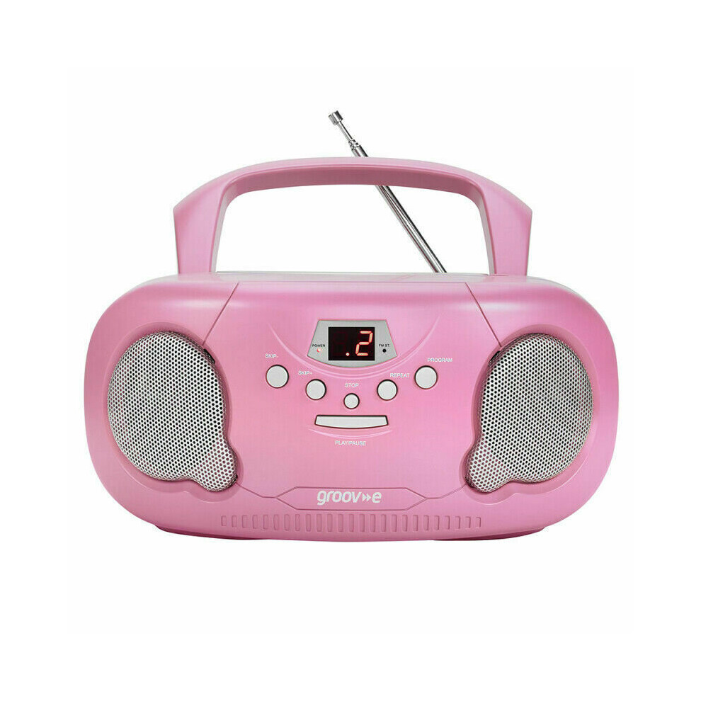 Groov-e Portable CD Player Boombox with AM/FM Radio, 3.5mm AUX Input, Headphone Jack, LED Display - Pink