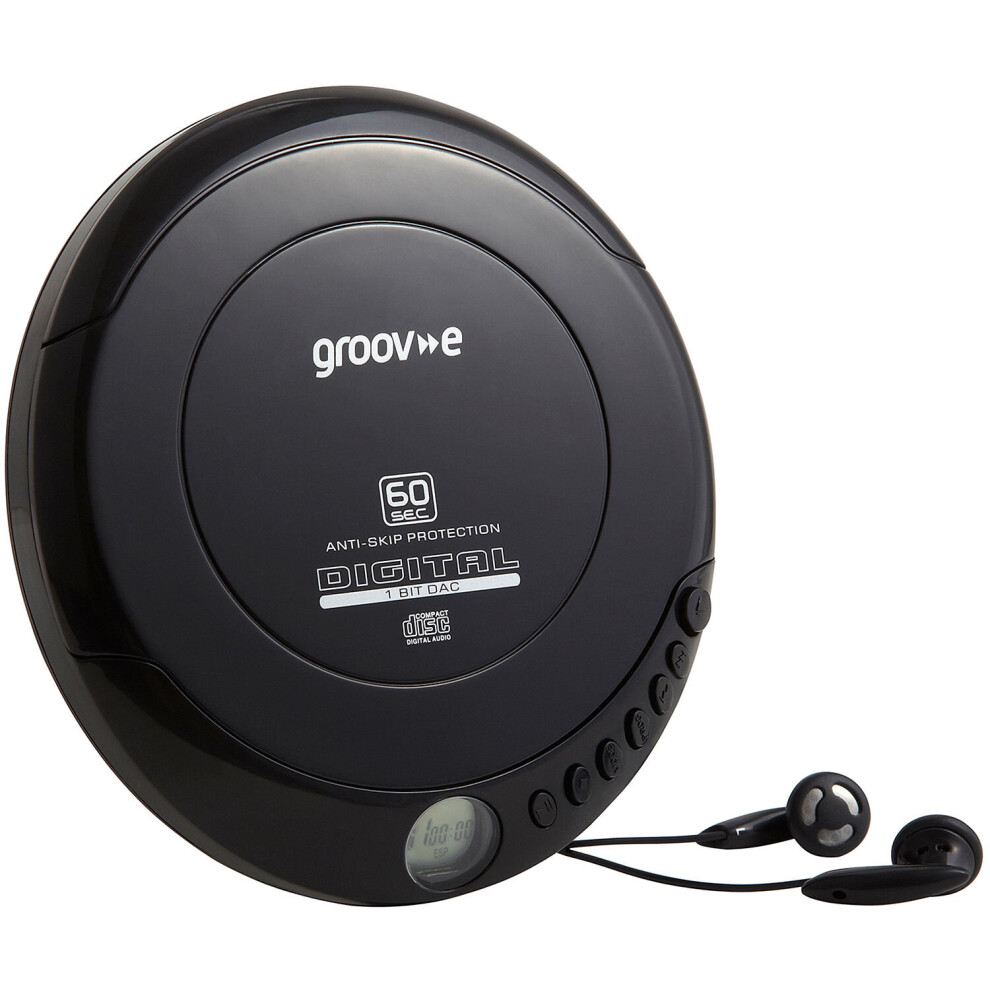 Groov-e Retro Series Personal CD Player + Radio MP3 Playback and Earphones - Black