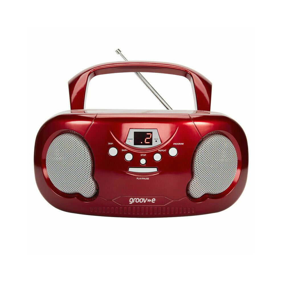 Groov-e Original Boombox Portable CD Player with AM/FM Radio and 3.5mm Aux-In GVPS733 - Red