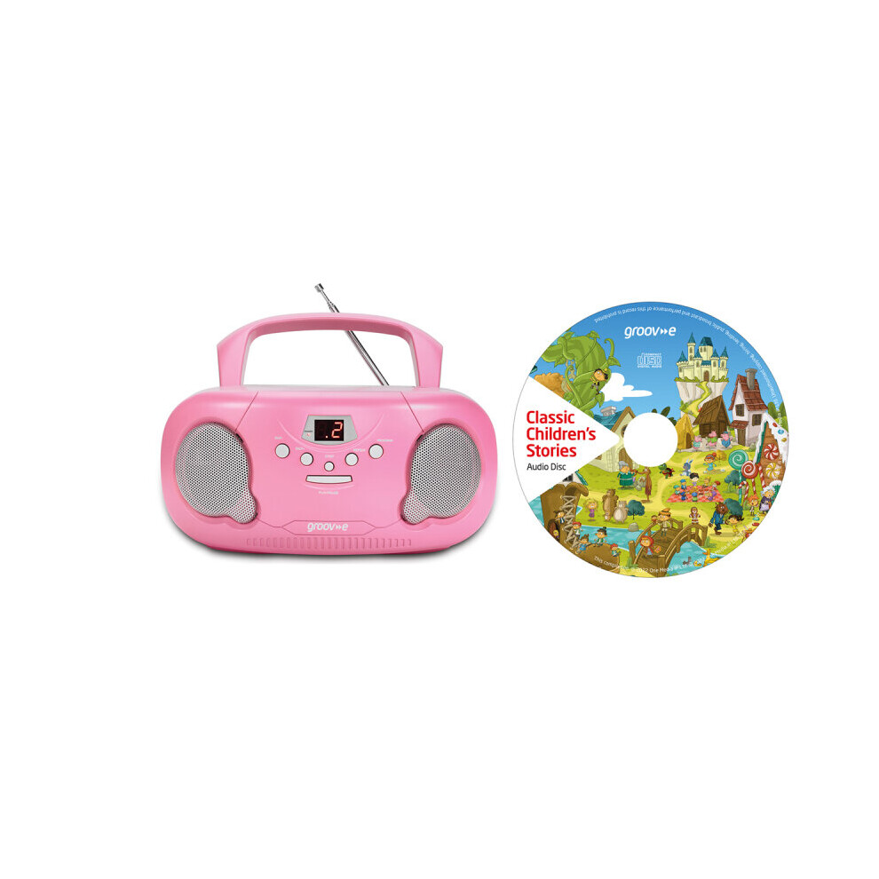 Groov-E Orginal Boombox & Kids Story CD Bundle - Portable CD Player with Radio,