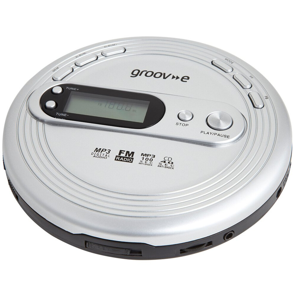 Groov-e Retro Series Personal CD Player + Radio MP3 Playback and Earphones Silver