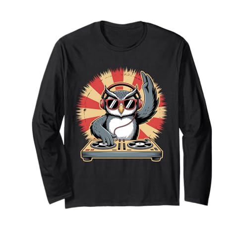 Owl DJ Mixing Beats Fun Headphones Groove Retro Long Sleeve T-Shirt