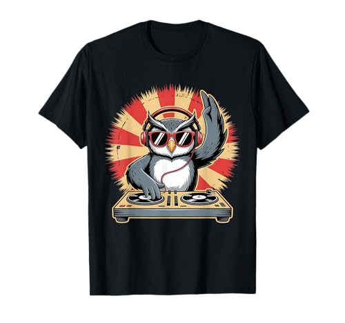 Owl DJ Mixing Beats Fun Headphones Groove Retro T-Shirt