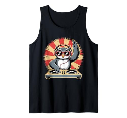 Owl DJ Mixing Beats Fun Headphones Groove Retro Tank Top