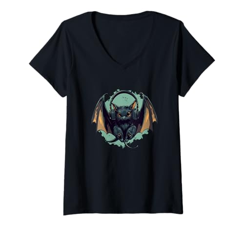 Womens Groove on with Bat with Headphones Now for Boys and Girls V-Neck T-Shirt