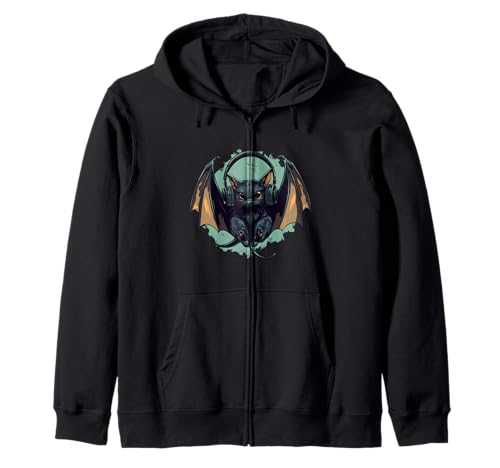Groove on with Bat with Headphones now for Boys and Girls Zip Hoodie