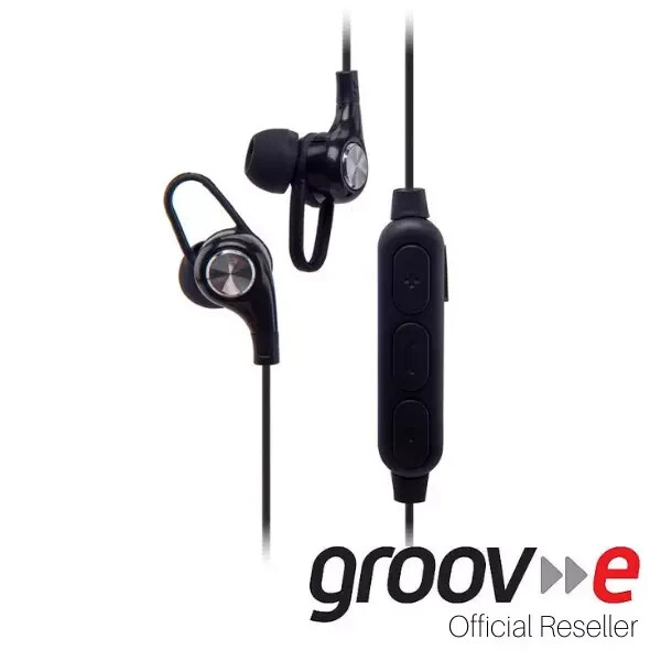Groov-e In-Ear Wireless Headphones Bluetooth Pulse V2 Remote & Microphone Black