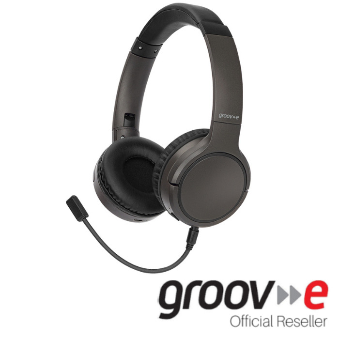 Groov-e On-Ear Wireless Headphones Bluetooth Microphone Noise Cancelling Grey