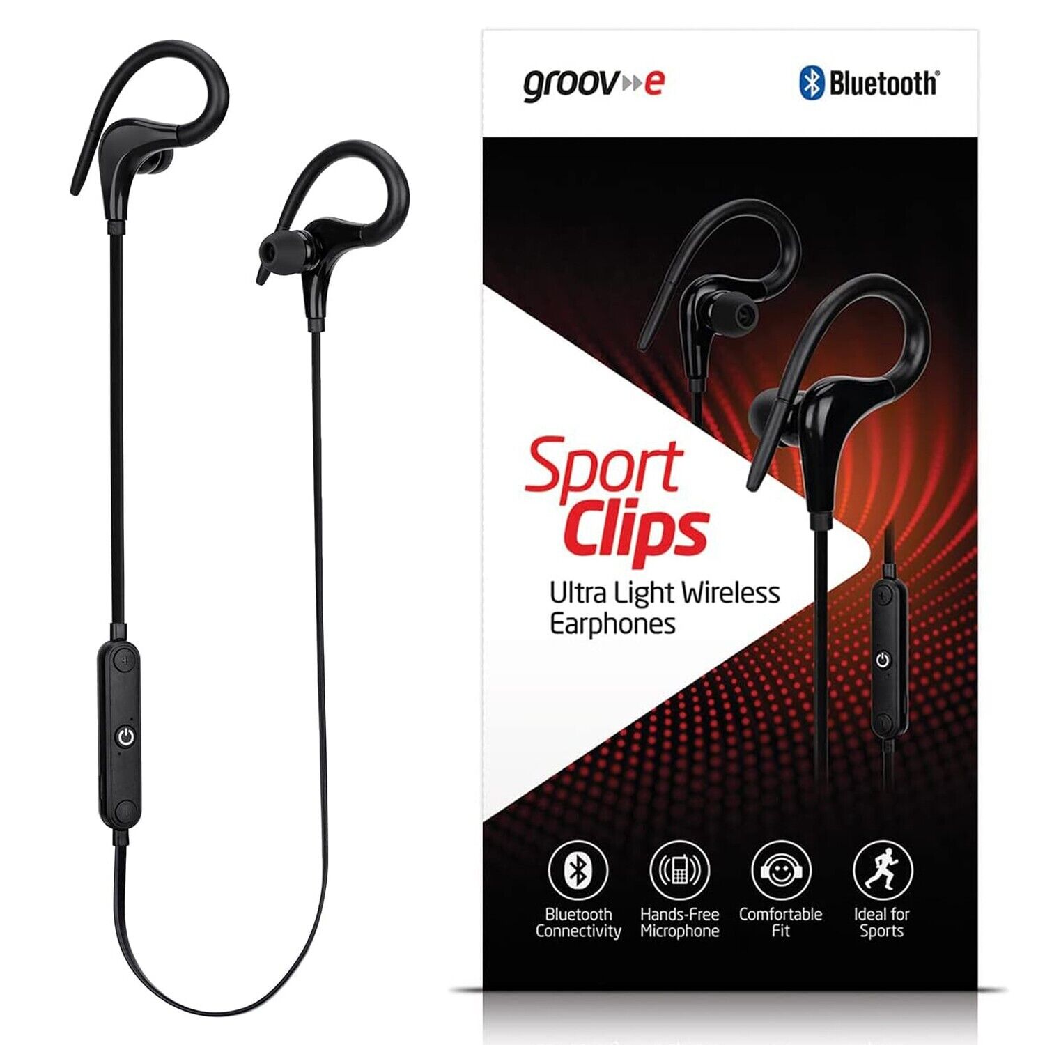 Groov-e Sports Clips Ultra-Light Wireless Bluetooth Headphones, Black-GVBT1400BK