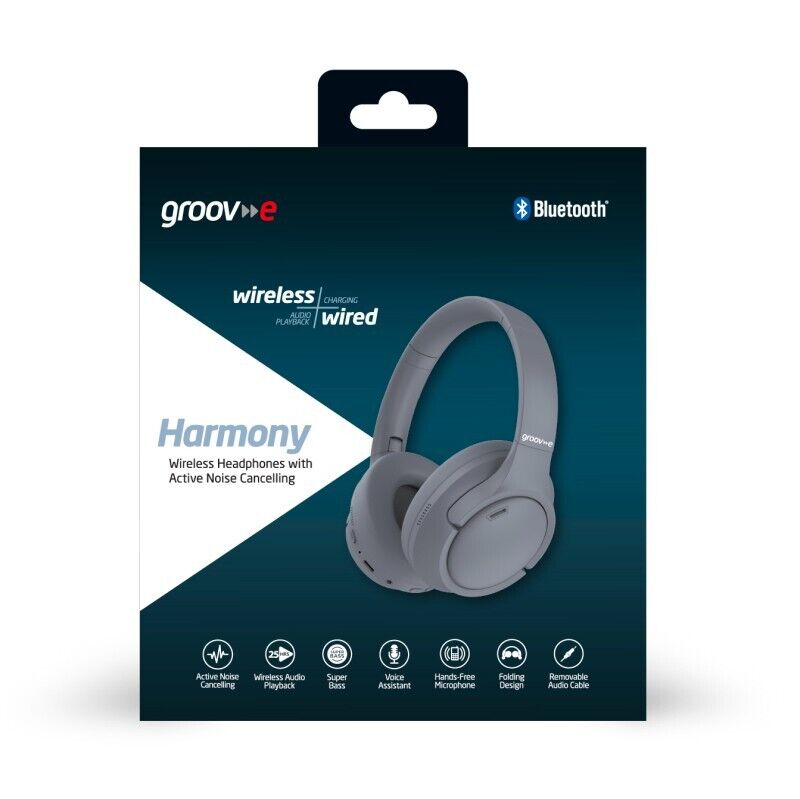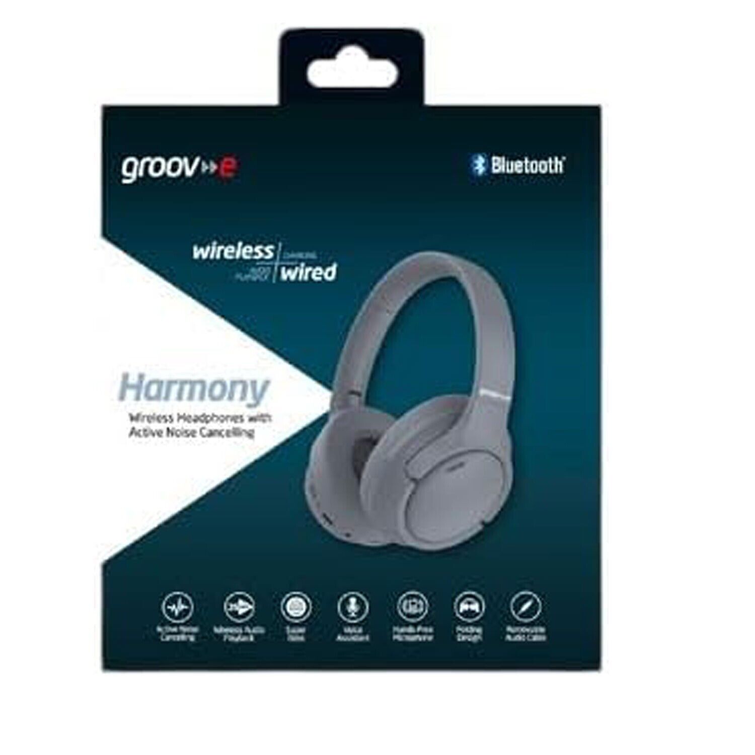 Groov-e Harmony Wireless Bluetooth Headphones with Active Noise Cancelling-Grey