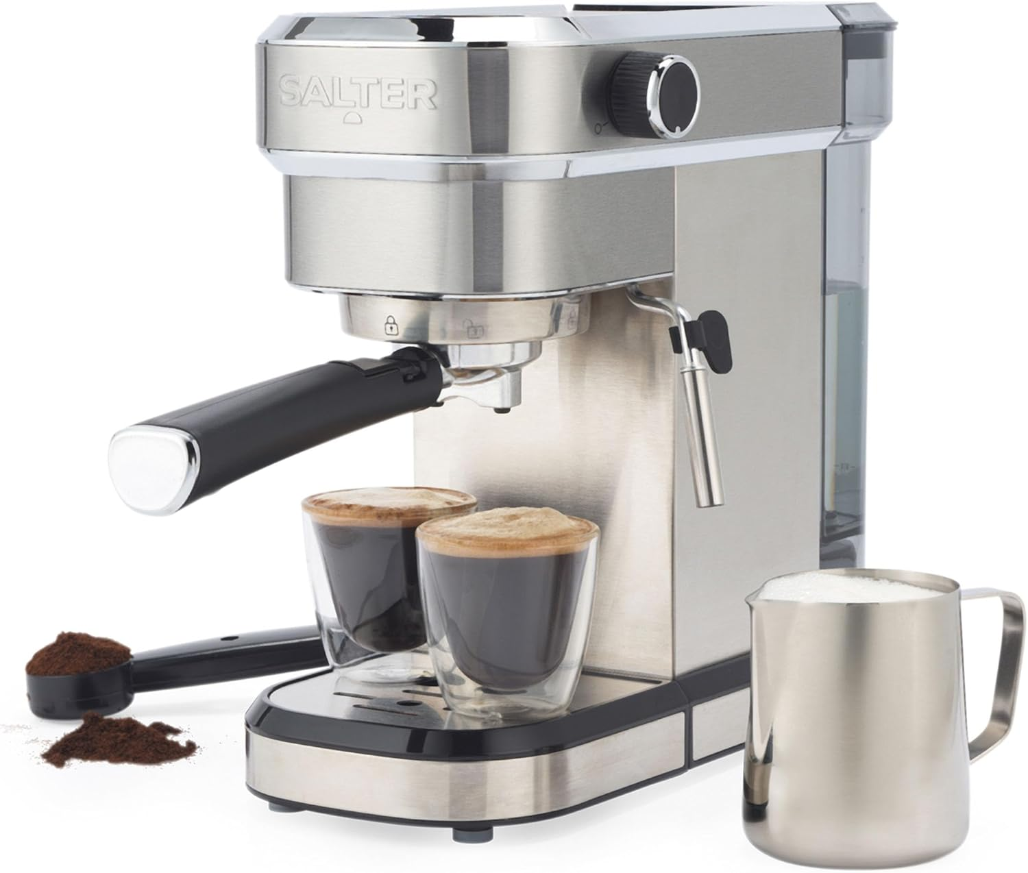 Salter Manual Espresso Machine With Milk Frother for Ground Coffee 1.6L Capacity