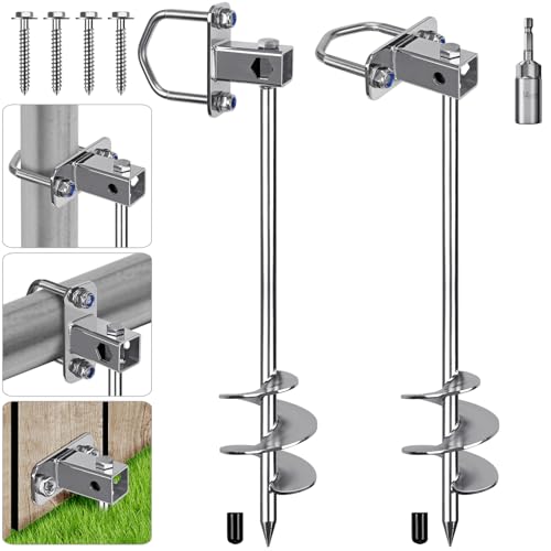 Hodzeed 4Set Heavy Duty Trampoline Anchor Ground Pegs Tie Down Kit - Tied Pet Dog Fixed, Fit Trampolines Garden Camp Swings Shed (Silver)
