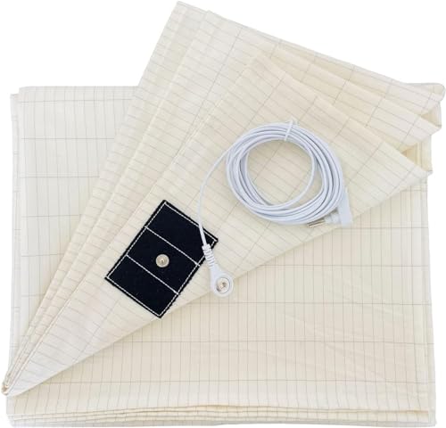 RIQINXIN Grounding Sheet Grounding Mat Earthing UK Conductive Bed Sheet with 10% Silver Fiber 90% Organic Cotton 68x132cm Sleep Therapy 15ft Cord Included Beige