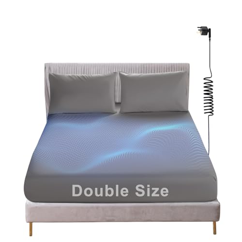 Grounding Fitted Sheet, Earthing Sheets Double Size with 15ft UK Cord, Grounding Bed Sheet with 5% Silver Fiber & 95% Organic Cotton for Improving Sleep, Better Working (135x195cm)