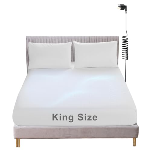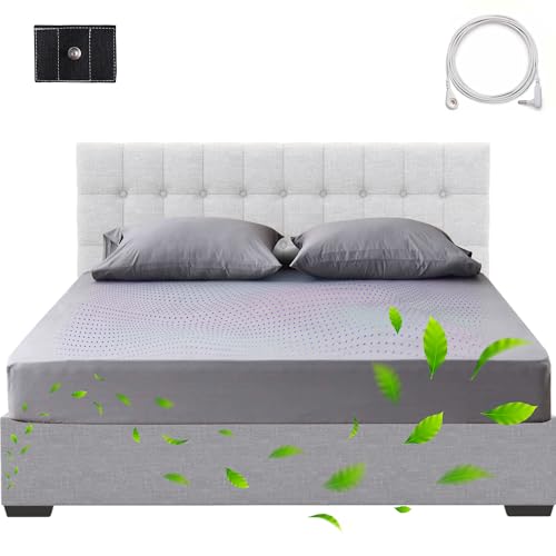 Grounding Fitted Sheet, Grounding Bed Sheet King Size, Elastic Full Wrap Grounding Mat Earthing UK, 90% Organic Cotton + 10% Pure Silver Fiber, Natural Wellness & Healthy Earth Energy Mat