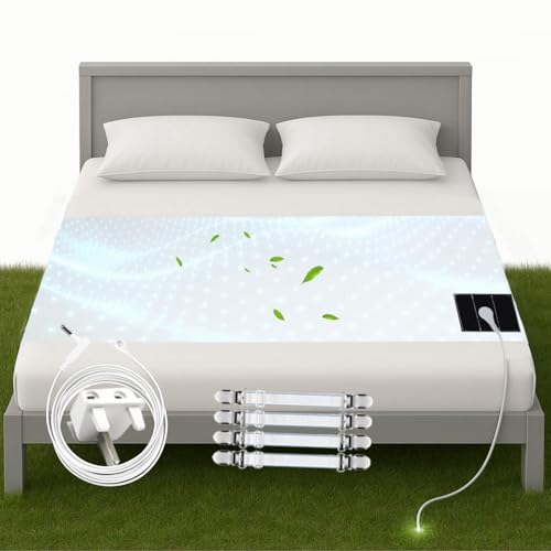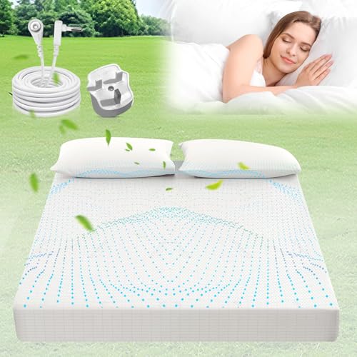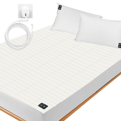 Swetfela Grounding Bed Sheet, Grounding Earthing UK, Grounding Mat with 10% Silver Fiber & 90% Organic Cotton, Natural Wellness and Healthy Earth Energy Mat (Queen-153×203cm)