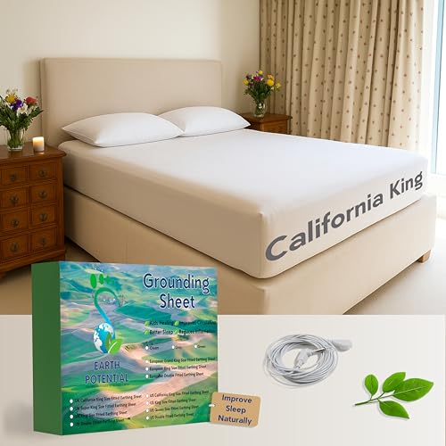 Earth Potential California King Size Grounding Sheet - Earthing Sheet for Healing Sleep & Wellbeing - c/w 15 ft Bed Grounding Cord - White, Gray, Green