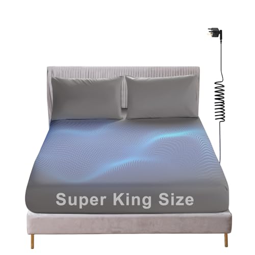 Grounding Fitted Sheet, Earthing Sheets Super King Size with 15ft UK Cord, Grounding Bed Sheet with 5% Silver Fiber & 95% Organic Cotton for Improving Sleep, Better Working (180x200cm)