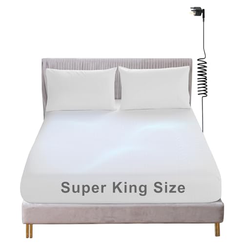Grounding Bed Sheet Super King Size, Elastic Full Wrap Grounding Mat Earthing UK, 90% Organic Cotton + 10% Pure Silver Fiber, Natural Wellness & Healthy Earth Energy Mat (198 x 203 x 30 cm)