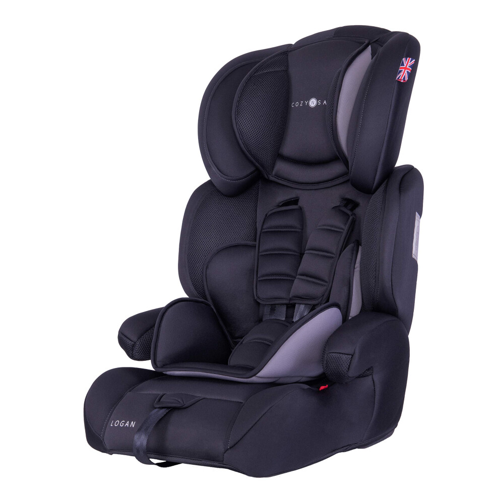 Cozy N Safe Logan Group 1/2/3 Car Seat 9-36kg, 9 Months to 12 Years, 5 Point Harness, Forward Facing, Side Impact Protection, Adjustable Headrest, Lightweight, Child, Toddler Car Seat - Black/Grey
