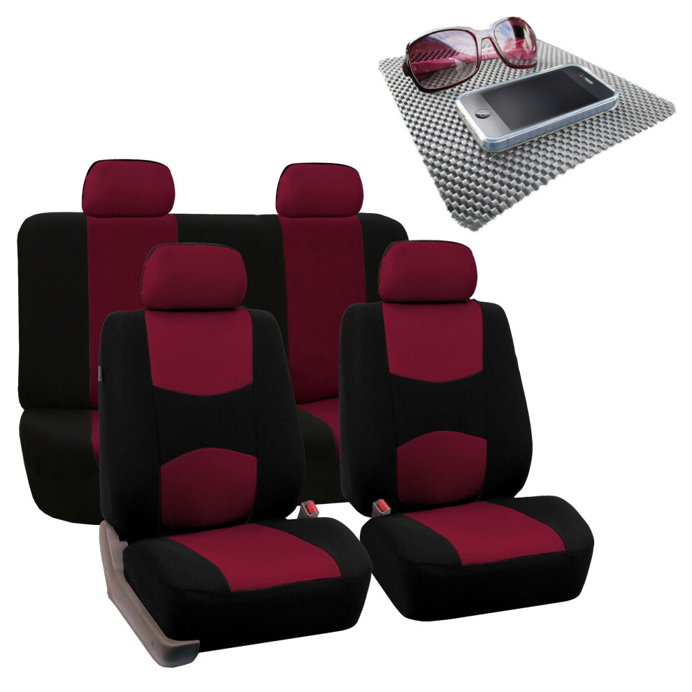 FH Group Bright Flat Cloth Full Set Car Seat Covers Burgundy/Black- F