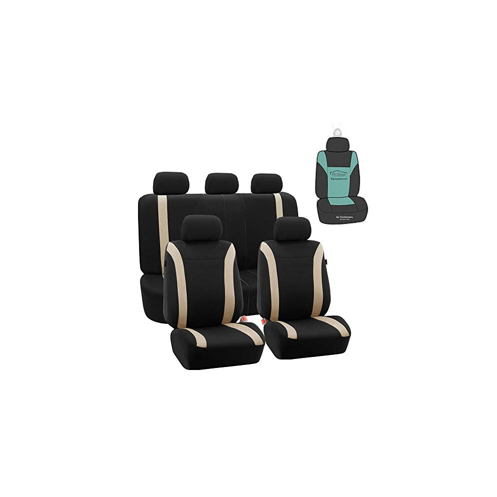 FH group Automotive Full Set car Seat covers cosmopolitan Flat cloth (Airbag compatible Split Bench) with gift- Universal Fit for cars Trucks and